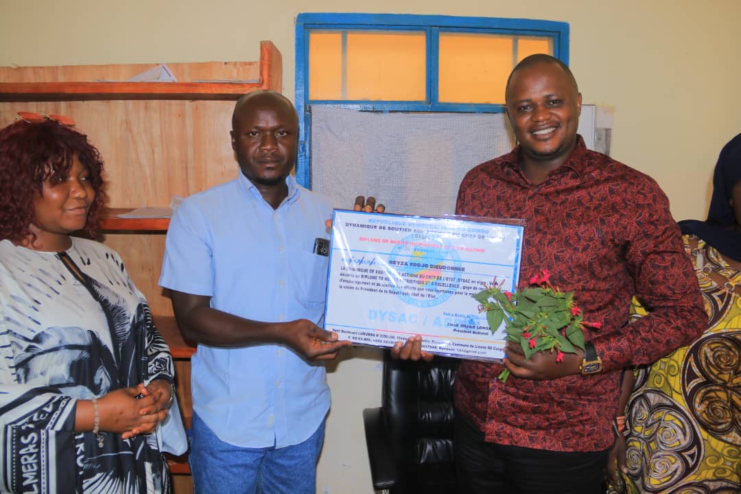 Le chef de quartier Nyakasanza 1, dans la commune éponyme de Bunia, chef-lieu de la province de l’Ituri (Nord-Est de la République démocratique du Congo), a été distingué par un diplôme de mérite patriotique et d’excellence, décerné par la Dynamique au Soutien du chef de l’État (DYSAC), en reconnaissance de son implication dans le développement local et le bien-être de ses administrés ce jeudi 26 février 2026. Visiblement ému, Dieudonné Beyza Kodjo, chef dudit quartier a exprimé sa gratitude. « Cette distinction est une véritable surprise qui touche mon cœur. Elle témoigne de l’impact des actions citoyennes et du travail collectif » a-t-il déclaré. Il a rappelé que le développement du pays est une responsabilité partagée : « Ce n’est pas seulement l’affaire du chef de l’État ou du gouverneur, mais de tous. Chaque bonne œuvre mérite d’être reconnue ». S’adressant à ses pairs et aux jeunes leaders, il a lancé un appel à l’engagement pour le bien commun : « J’invite mes collègues et les jeunes à dépasser les divisions, à travailler pour la population et à œuvrer ensemble pour le progrès ». Cette remise de prix, inscrite dans le cadre du Programme de Solidarité Communautaire (PSC), met en lumière l’importance du leadership local et de la mobilisation citoyenne dans le renforcement du tissu social et le développement en Ituri. Rédaction Partager